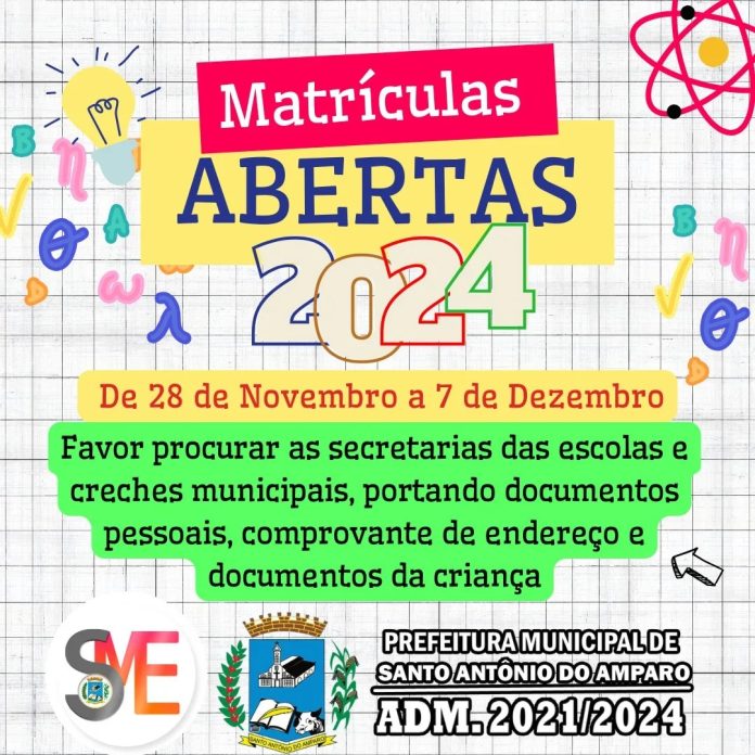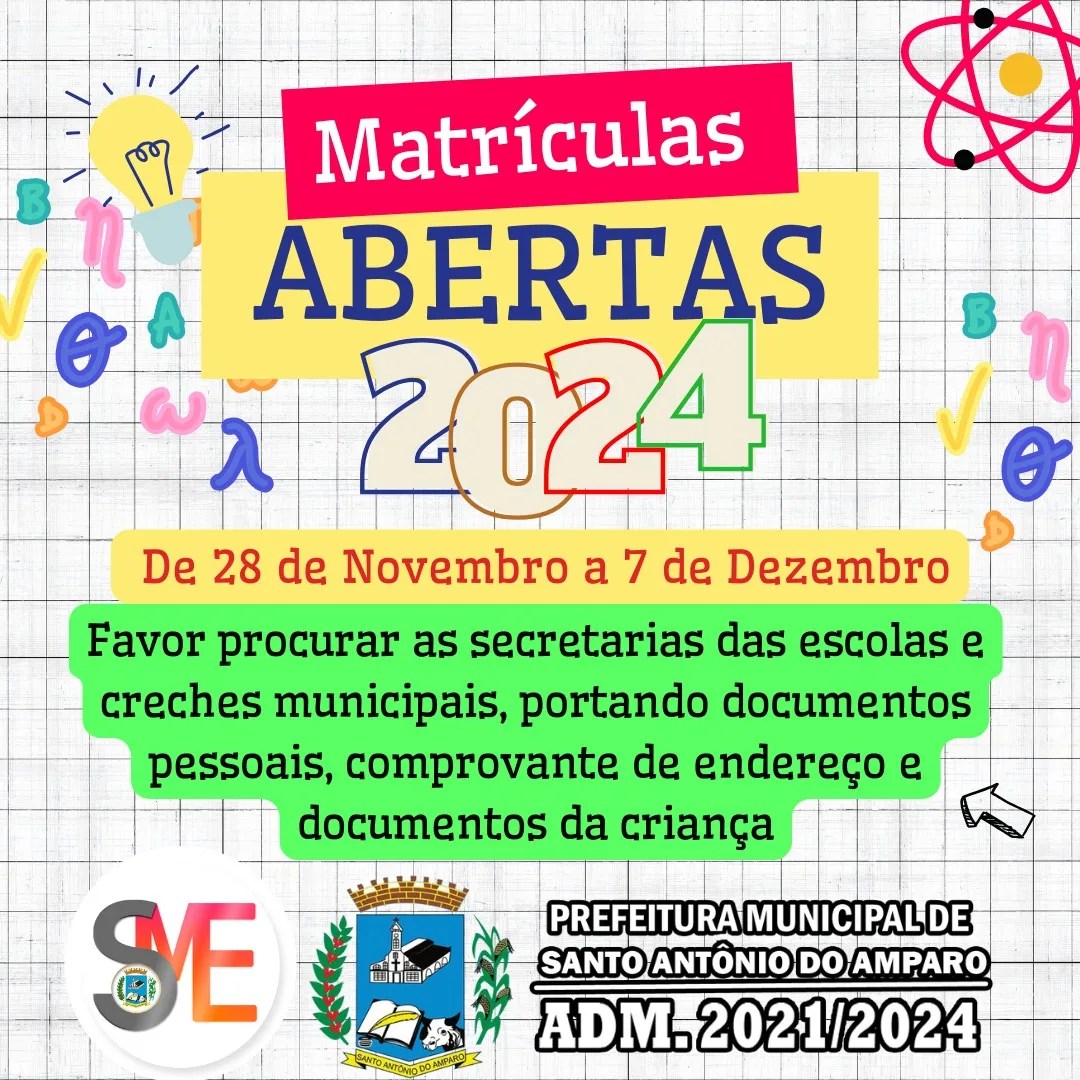 SENHORES PAIS OU RESPONSÁVEIS FIQUEM ATENTOS AS DATAS DE MATRÍCULAS PARA O ANO DE 2024 NAS