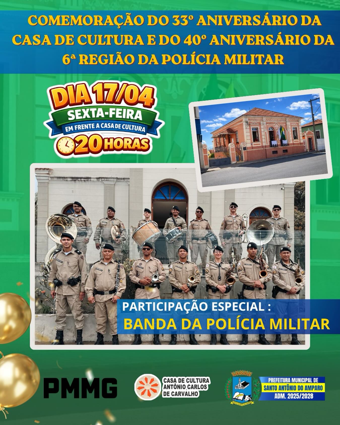 A noite contará com a presença especial da Banda Musical da Polícia Militar, trazendo muita música e emoção!